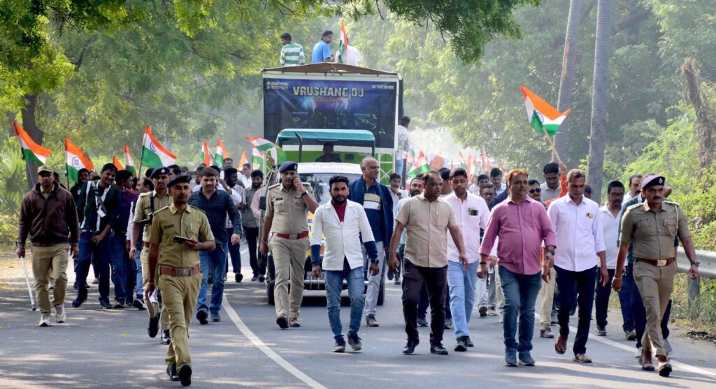 ખંભાતના ગવારા ટાવરથી નગરાના નટેશ્વર તળાવ સુધી એકતા પદયાત્રા સપન્ન થઈ