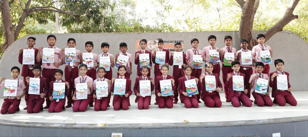 નાનકડા વિદ્યાર્થીઓએ વિવિધ રંગોથી કાગળ પર કલાત્મક ચમત્કાર સર્જ્યો. દરેક ચિત્રમાં નિર્દોષ કલ્પનાની ઝલક અને કળાપ્રેમ સ્પષ્ટ દેખાયો.